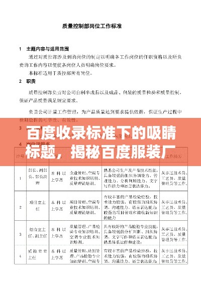 转载请注明来自福建光数数字技术有限公司,本文标题:《百度收录标准下的吸睛标题,揭秘百度服装厂质量控制部门QC的职责与使命!》
