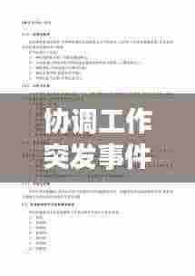 在现代社会,工作场所的突发事件时有发生,这些事件可能是由自然灾害、技术故障、人为错误或其他不可预见的原因引起的。协调工作突发事件是企业管理者和团队领导者必须面对的重要挑战。有效的协调不仅能减少损失,还能提升组织的应急响应能力和员工士气。本文将探讨协调工作突发事件的关键步骤和策略。
