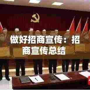 做好招商宣传是企业发展的关键一环。通过明确招商目标、制定合理策略、创新宣传手段、优化宣传内容以及加强执行力,企业可以有效提升招商效果,吸引更多优质资源,为企业发展注入强大动力。让我们共同努力,做好招商宣传,共创美好未来。