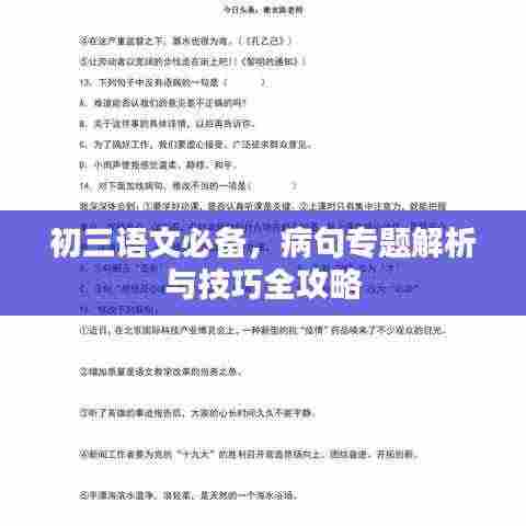随着中考的临近,学生们在语文学科上的复习逐渐进入深水区,病句专题是许多初三学生面临的一大难点,本文将围绕“初三病句专题”展开,帮助学生们深入理解并掌握病句的识别与修改技巧。