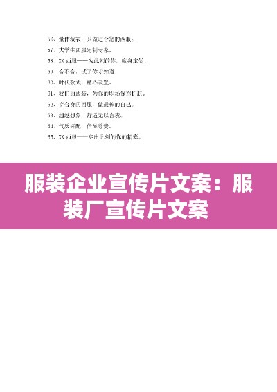 转载请注明来自福建光数数字技术有限公司,本文标题:《服装企业宣传片文案:服装厂宣传片文案 》