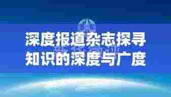 在信息爆炸的时代,我们面临着海量的信息和新闻,真正的深度和广度往往隐藏在表面之下,需要我们深入探索,为此,深度报道的杂志成为了我们获取深度知识和全面信息的重要渠道,有哪些杂志在深度报道方面表现出色呢?我们将一起探讨这个问题。