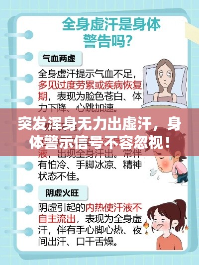 突发浑身无力出虚汗可能是身体发出的警示信号,应及时关注并采取相应措施,通过保持良好的生活习惯和定期体检,我们可以有效预防这类症状的发生,如症状持续不缓解或加重,应及时就医,以免延误治疗。