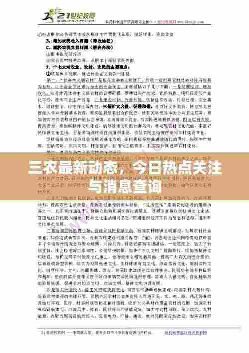三农问题一直是我国政府关注的重点问题之一,随着时代的变迁,三农问题也在不断地发展和变化,为了更好地了解三农领域的最新消息,本文将为大家介绍有关三农的最新消息和动态。