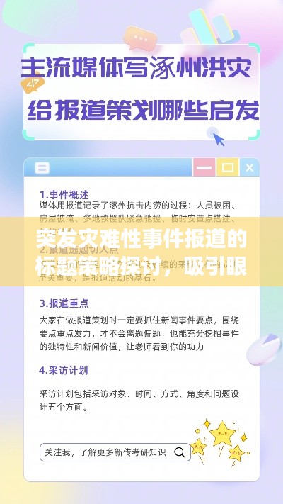随着社会的快速发展,信息传播速度日益加快,公众对于突发灾难性事件的关注度不断提高,在这样的背景下,如何对突发灾难性事件进行及时、准确、客观的报道,成为媒体和新闻工作者的重要任务,而报道标题作为新闻的第一印象,其重要性不言而喻,一个好的报道标题能够迅速吸引公众关注,传递核心信息,引导舆论走向。
