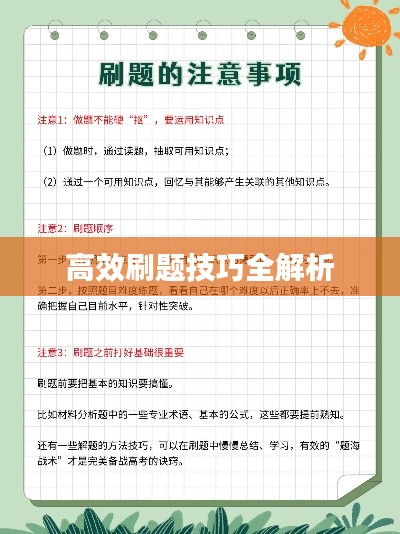 高效刷题是提高学习效果的重要途径之一,通过明确目标、精选题目、掌握方法、结合实际、保持心态、定期复习、善于总结和拓展视野等策略,你可以更好地进行刷题练习,提高自己的知识和能力,希望本文能对你有所帮助,祝你在学习的道路上取得更好的成绩!