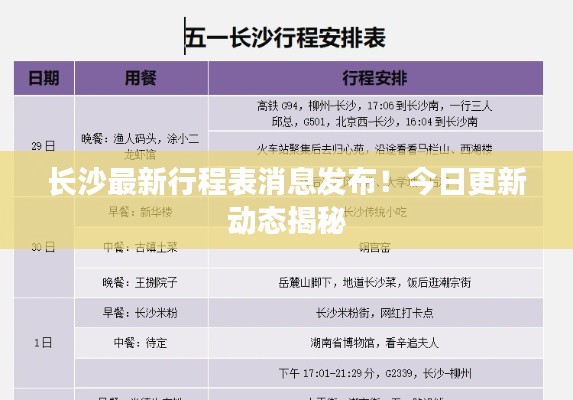 随着社会的不断发展,人们对于各类信息的获取速度日益加快,特别是在如今这个快节奏的生活环境下,行程安排的重要性愈发凸显,长沙,这座历史文化名城,其今日行程表备受关注,本文将为您带来长沙最新行程表消息,带您一探长沙的魅力之旅。