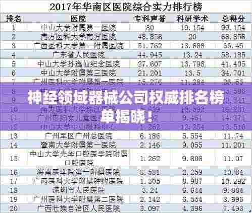 神经领域器械公司权威排名榜单揭晓!