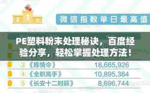 PE塑料粉末作为一种常见的工业原料,广泛应用于制造、建筑、家居等领域,对于不熟悉其处理流程的人来说,如何妥善处理和利用PE塑料粉末可能会成为一个问题,本文将结合百度搜索的资料,详细介绍PE塑料粉末的处理方法,以帮助大家更好地了解和运用这一材料。