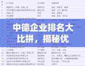 随着全球化的发展,中德两国在经贸领域的合作日益紧密,在众多合作企业中,一些表现突出的公司脱颖而出,成为了行业的佼佼者,本文将根据中德两国公司的表现,列举出其中的优秀公司并对其进行排名分析。