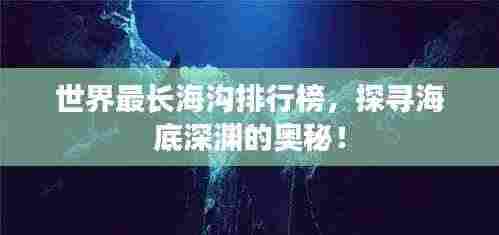 海洋是地球上最为神秘和壮丽的自然景观之一,其中海沟更是海洋深处的奇迹,本文将为您揭示世界最长海沟的排名,带您领略这些地球深处的壮丽景观。