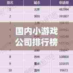 随着移动互联网的迅猛发展,小游戏行业也日新月异,各种小游戏公司层出不穷,本文将介绍国内小游戏公司的排名,以供参考。