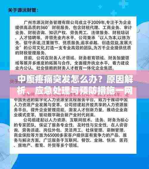 突发的中腹疼痛可能是由多种原因引起的,如消化系统疾病、泌尿系统疾病等,当遇到中腹疼痛时,我们首先要注意休息,可以采取热敷等方法缓解疼痛,并在医生的指导下使用一些药物,如果疼痛持续加重,或伴随其他症状,应及时就医,我们可以通过保持良好的生活习惯、加强锻炼、定期体检等方式预防中腹疼痛的发生,希望通过本文的介绍,您能更好地了解和应对突发的中腹疼痛,保护自己的身体健康。