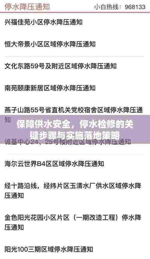 随着我国城市化进程的加快,水资源的重要性日益凸显,供水设施的检修与保养成为保障民众生活的重要任务,停水检修作为维护供水系统正常运行的关键环节,其实施过程中的落实工作至关重要,本文将探讨如何有效落实停水检修工作,确保供水安全。