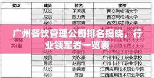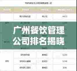 广州,作为中国南方的重要城市,以其繁荣的经济和多元文化而著称,在这座充满活力的城市中,餐饮行业的发展尤为突出,众多餐饮管理公司在激烈的市场竞争中脱颖而出,为广大消费者提供优质的餐饮服务,本文将为您揭示广州餐饮管理公司的排名,带您了解这些行业领军者。
