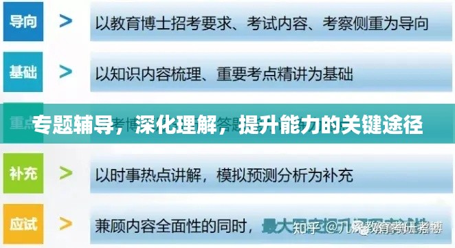 在现代教育体系中,专题辅导已经成为一种重要的教学方法,它以针对性强、实效性强、个性化强的特点,广泛应用于各类教育场景,通过专题辅导,学生们能够在特定领域进行深入学习,提升理解能力和实践能力,本文将探讨如何通过专题辅导,有效促进学生的知识吸收和能力提升。