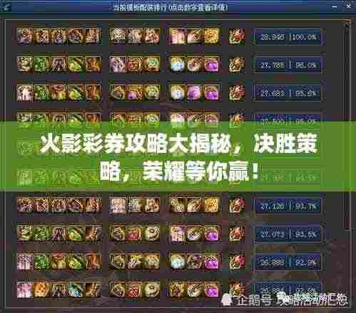 火影彩券是火影忍者手游中的一项特色活动,玩家通过抽取彩券来获得丰厚的奖励,包括忍者碎片、限定道具等,本文将为大家带来最新的火影彩券攻略,帮助大家掌握策略,赢取荣耀。