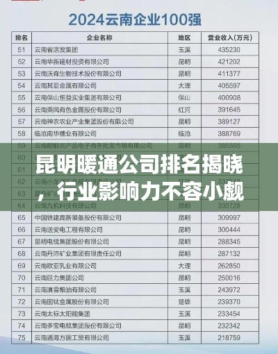 随着社会的不断发展和人们生活水平的提高,暖通行业逐渐受到广泛关注,昆明作为云南省的省会城市,暖通市场日益繁荣,众多暖通公司纷纷在此扎根发展,本文将探讨昆明暖通公司的排名及其行业影响力。