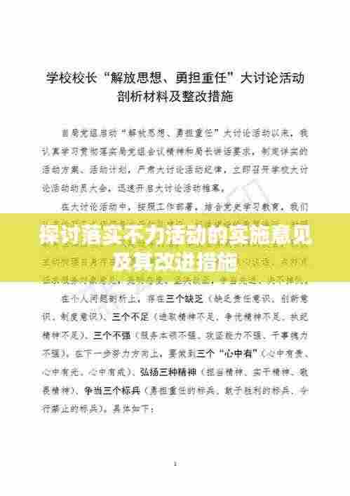 在当前社会发展过程中,各类活动的举办对于推动社会进步、促进交流与合作具有重要意义,在实际操作过程中,由于多种原因,活动实施往往存在落实不力的情况,影响了活动的预期效果,针对这一问题,本文将对落实不力活动实施意见进行探讨,旨在引起各方关注,共同寻求解决办法。