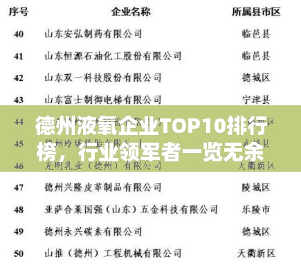 液氧作为现代工业的重要原料之一,在医疗、钢铁、化工等领域有着广泛的应用,在德州地区,液氧生产企业众多,各具特色,本文将对德州地区液氧企业排名前十名进行介绍,以让读者更好地了解这些企业的实力和特点。