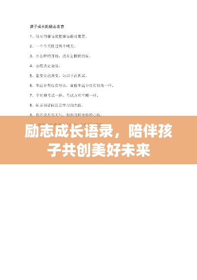 陪伴孩子成长是一段美好的旅程,让我们用励志语录为孩子们加油打气,陪伴他们勇敢地追逐梦想,在爱的阳光下,孩子们将茁壮成长,成为未来的希望,让我们一起努力,为孩子们创造一个更加美好的明天!