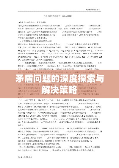 在现今社会,我们面临着众多复杂的问题,其中矛盾问题尤为突出,不断困扰着人们的思维与行动,矛盾无处不在,无时不有,其产生与解决是我们必须面对的挑战,本文旨在探讨矛盾问题的现状、成因,以及寻找解决之道。