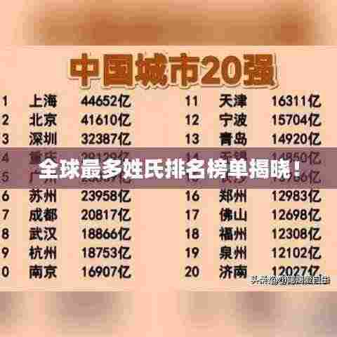 在全球的广袤土地上,各种姓氏如繁星般繁多,各具特色,本文将为您揭示世界姓氏最多的排名,带您领略全球姓氏文化的魅力。