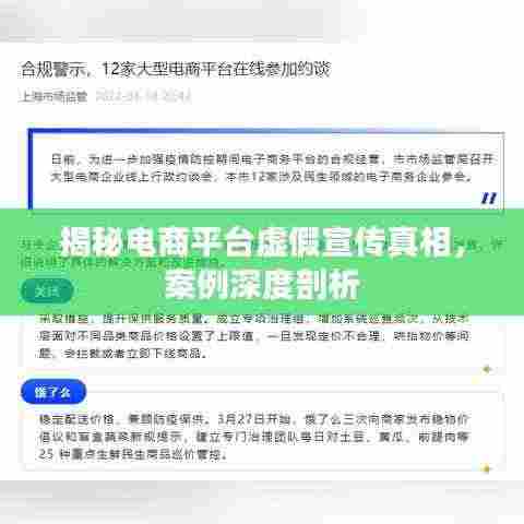 随着电子商务的飞速发展,各大电商平台之间的竞争日益激烈,为了吸引消费者,部分电商平台在宣传过程中存在过度宣传、虚假宣传的现象,这不仅损害了消费者的合法权益,也对整个电商行业的健康发展造成了不良影响,本文将深入探讨几个典型的电商平台虚假宣传案例,以期引起社会各界的关注与反思。