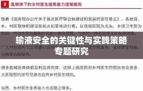 输液安全是保障患者安全和治疗效果的重要环节,为确保输液安全,医疗机构和医护人员应采取强化培训、严格执行操作规范、合理用药、监测不良反应、使用安全设备等措施,通过专题研究输液安全,我们可以不断提高输液安全水平,为患者的健康保驾护航。