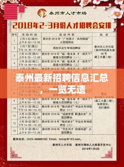 随着泰州经济的蓬勃发展,各类企业如雨后春笋般茁壮成长,为求职者提供了丰富的就业机会,本文将为您详细介绍泰州今日最新的招聘信息,助您了解当地的就业市场,找到理想的工作。