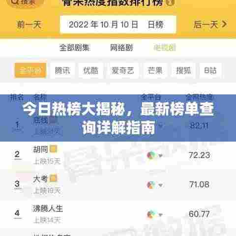 随着互联网的普及和社交媒体的飞速发展,人们获取信息的渠道日益多样化,在众多信息渠道中,“今日热榜”作为一种重要的信息传播媒介,已经成为人们了解时事热点、追踪流行趋势的重要工具,本文将详细介绍如何进行最新的榜单查询,以及如何利用这些榜单信息。