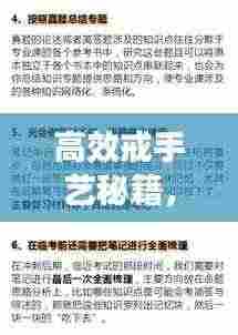 手艺,在现代社会,往往指的是一种专业技能或兴趣爱好,有时候过于沉迷于手艺可能导致生活失衡,影响工作、学习和健康,如何高效戒手艺成为了许多人关注的焦点,本文将提供一种全面的方法,帮助大家逐步摆脱手艺的困扰,恢复生活的平衡。