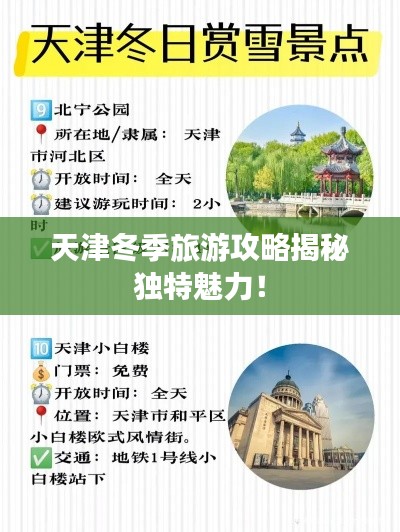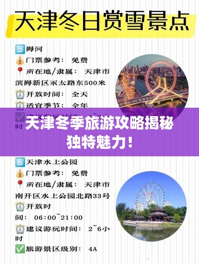 天津的冬天充满了历史的韵味、冰雪的魅力、美食的诱惑和文化的气息,您可以感受到这座城市的独特魅力,留下难忘的回忆,无论您是历史爱好者、美食家还是运动爱好者,天津的冬天都会给您带来别样的体验,希望这篇攻略能帮助您更好地了解天津的冬天,祝您旅途愉快!
