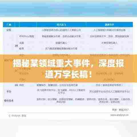在当今社会,许多领域都在不断地发展和变化,其中一些重大事件引起了人们的广泛关注,本文将以一万字的深度报道,揭示某领域的重大事件,从多个角度呈现事件的来龙去脉,揭示事件背后的原因和影响。
