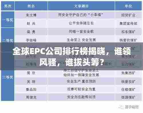 随着全球经济的发展,工程、采购、施工(EPC)行业逐渐壮大,各大公司纷纷崭露头角,本文将为您揭示世界EPC公司的排名,带您了解这些企业的实力与影响力。