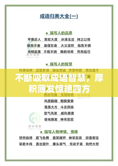 “厚积薄发”是一个充满智慧的成语,它告诉我们不断吸取、积累的重要性,在生活中,我们应该秉持这一理念,不断地学习、成长和进步。