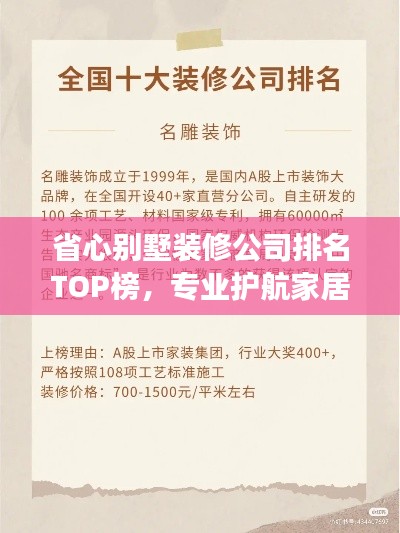 在繁忙的现代生活中,别墅装修对于许多人来说既是一项挑战,也是一项繁琐的任务,选择一个省心的别墅装修公司,能够让您的装修过程更加顺利,减轻您的压力,本文将为您介绍一些在市场上备受好评的别墅装修公司排名,帮助您找到最适合您的装修伙伴。