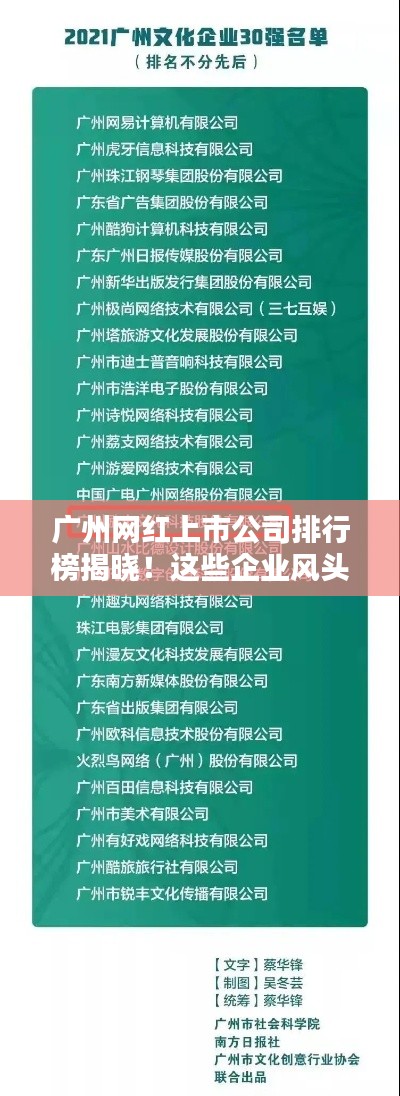广州,作为中国南方的重要城市,近年来经济发展迅速,吸引了众多企业和投资者的目光,随着互联网的普及,一些公司逐渐崭露头角,成为了网红上市公司,本文将为您介绍广州的网红上市公司排名。