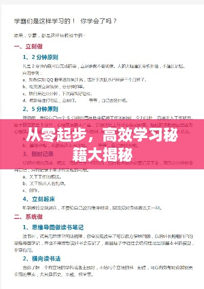 从零开始做高效学习并非一朝一夕之事,需要我们付出努力和耐心,只要我们设定明确的学习目标,掌握有效的学习方法,建立良好学习习惯,实践与应用所学知识,调整心态,持续进步,我们就能实现高效学习,不断提升自己的能力和素质,让我们一起努力,为实现自己的梦想而奋斗!