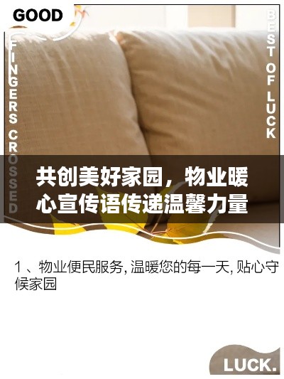 物业暖心宣传语是传递物业服务温暖与关怀的重要载体,让我们共同努力,共创美好家园的温馨力量!