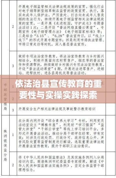 在当前法治社会建设的进程中,"依法治县"作为法治国家建设的重要组成部分,其意义深远,为了更好地推进依法治县工作,加强宣传教育至关重要,本文将围绕依法治县宣传教育展开讨论,阐述其重要性、内容及其在实践中的应用。