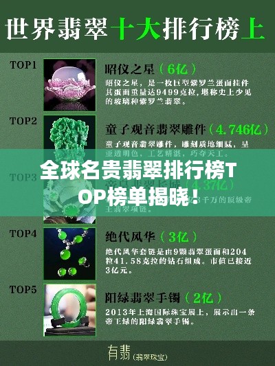 翡翠,作为东方宝石之王,以其独特的美感与稀有性深受世界各地人们的喜爱,从东方的中国到西方的欧洲,再到全球各地,翡翠都有着极高的知名度和价值,以下是全世界名贵翡翠的排名,让我们一同领略这些翡翠的魅力。