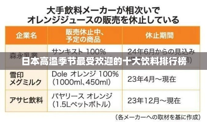 随着夏季的到来,高温天气使得人们更加渴望冷饮消暑,日本作为饮料大国,其饮料种类繁多,口感独特,深受消费者喜爱,接下来就为大家介绍日本在高温天气下最受欢迎的十大饮料。