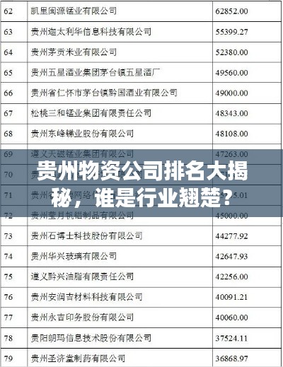 随着经济的发展和社会的进步,贵州物资公司在国内外的影响力逐渐增强,其在物资行业中的地位也日益凸显,本文将探讨贵州物资公司的排名及相关情况。
