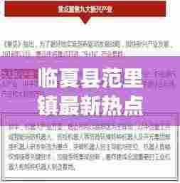 临夏县范里镇的各项新闻头条吸引了广大市民的关注和热议,这个小镇以其独特的魅力和不断进取的精神,在各个领域取得了显著的成就,让我们一起来了解一下临夏县范里镇的最新动态。