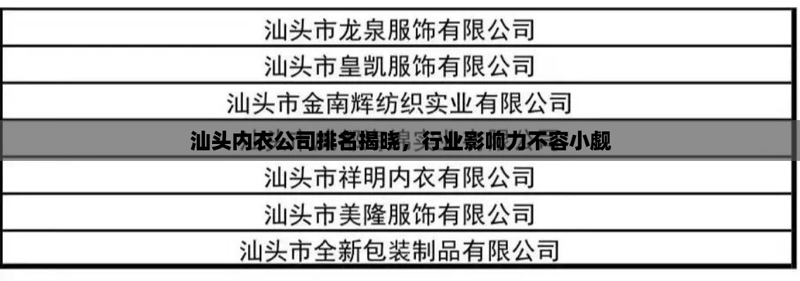 汕头作为中国内衣产业的重要基地之一,拥有众多的内衣公司,它们以其优质的产品和服务赢得了广大消费者的信赖,本文将为您介绍汕头内衣公司的排名及其行业影响力。