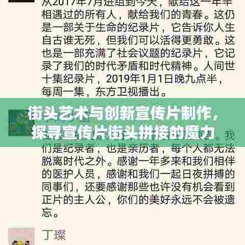 “宣传片街头拼接”的魔力在于其创新性和互动性,通过这种手法,宣传片不再是一个简单的信息传达工具,而是一个充满艺术感和创意的视听作品,观众在观看宣传片的过程中,不仅可以获取宣传信息,还可以感受到街头艺术的魅力,体验到一种全新的视觉体验。