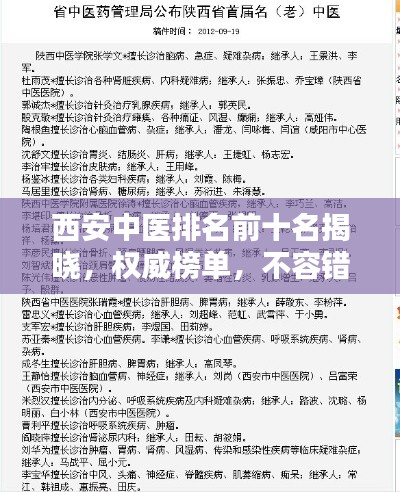 西安,这座古老而充满活力的城市,不仅是中国的历史文化名城,也是中医药文化的重要发源地之一,中医事业得到了蓬勃发展,众多中医机构和专家以其卓越的医术和深厚的中医药文化赢得了广大患者的信赖,以下是西安中医排名前十名的介绍。