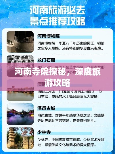 河南省,作为中华文明的发源地之一,拥有丰富的文化遗产和宗教旅游资源,佛教寺院作为河南文化的重要组成部分,吸引了众多游客前来参观,本文将为您介绍河南的寺院旅游攻略,带您领略悠久的佛教文化和美丽的寺院风光。
