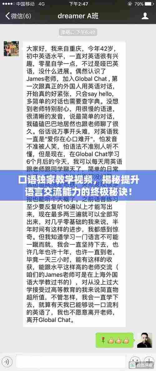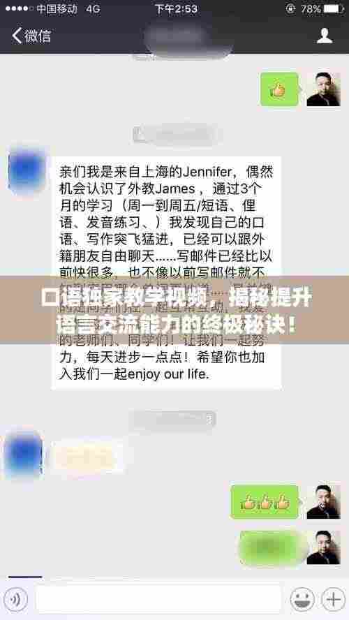 口语独家教学视频是提升语言交流能力的秘密武器,让我们一起拥抱这种新的学习方式,共同提高口语水平,迎接全球化的挑战!